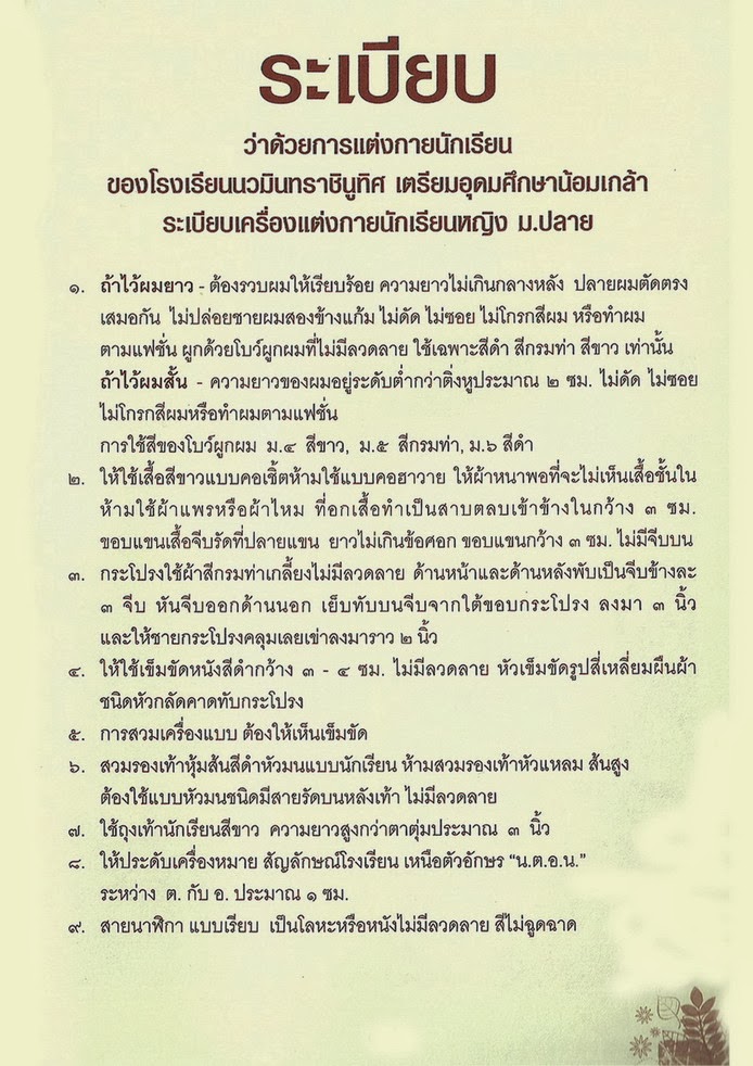 ระเบียบเครื่องแต่งกายนักเรียนหญิง ม.ปลาย