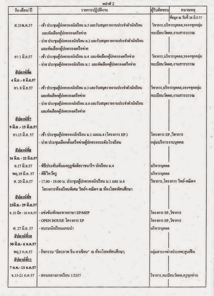 ปฏิทินปฏฺิบัติงาน เทอม 1-2 ปีการศึกษา 2557